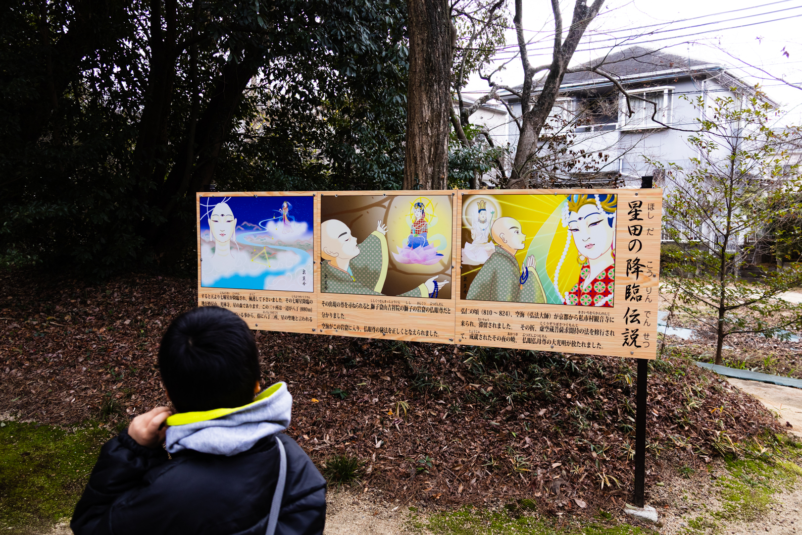 弘仁年間(810~824年)弘法大師が交野に訪れた際、獅子の窟に入り佛眼仏母の秘宝を唱えると天上から北斗七星が降り3か所に分かれて地上に落ちたそうです。その内の一つが星田妙見宮に落ち御神体として祀られているそうです。