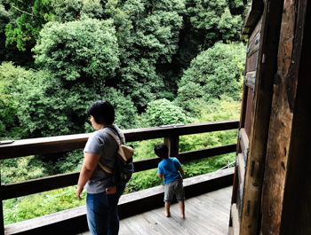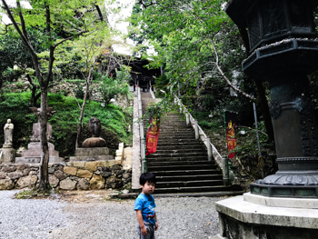 駐車場から境内までは長い階段が続き、国宝に指定されている三重塔があり、その上に懸崖造りの本堂があります。