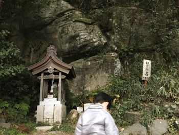 奥の院は巨木の中に「天楽石」と名付けられた石があり、聖徳太子が彫ったと伝わる妙見菩薩を中心に五仏の仏さまが描かれています。