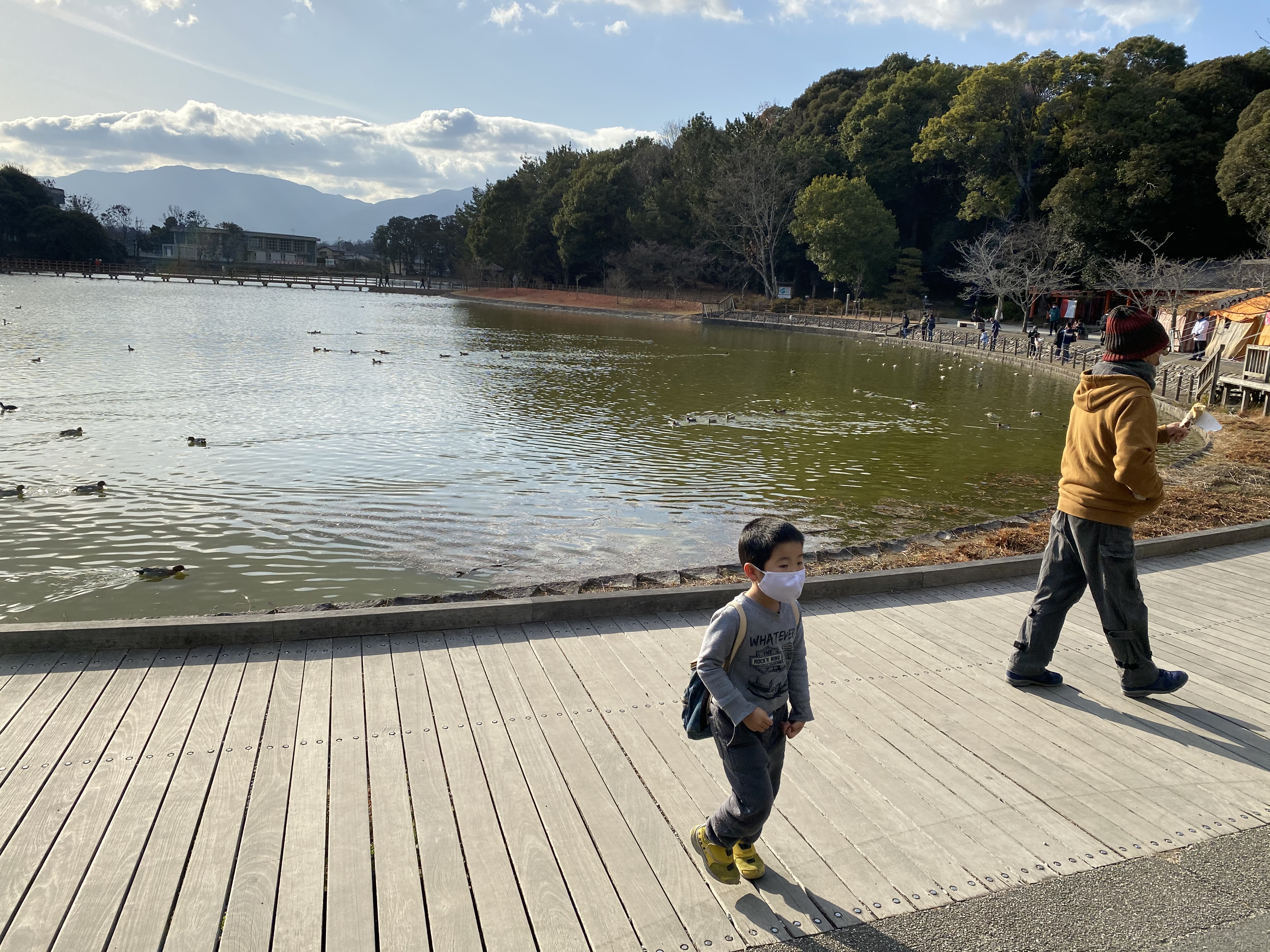第二鳥居を過ぎると左手に深田池があります。約49500㎡(約15000坪)の広大な溜池で飛鳥時代に築造されたそうです。