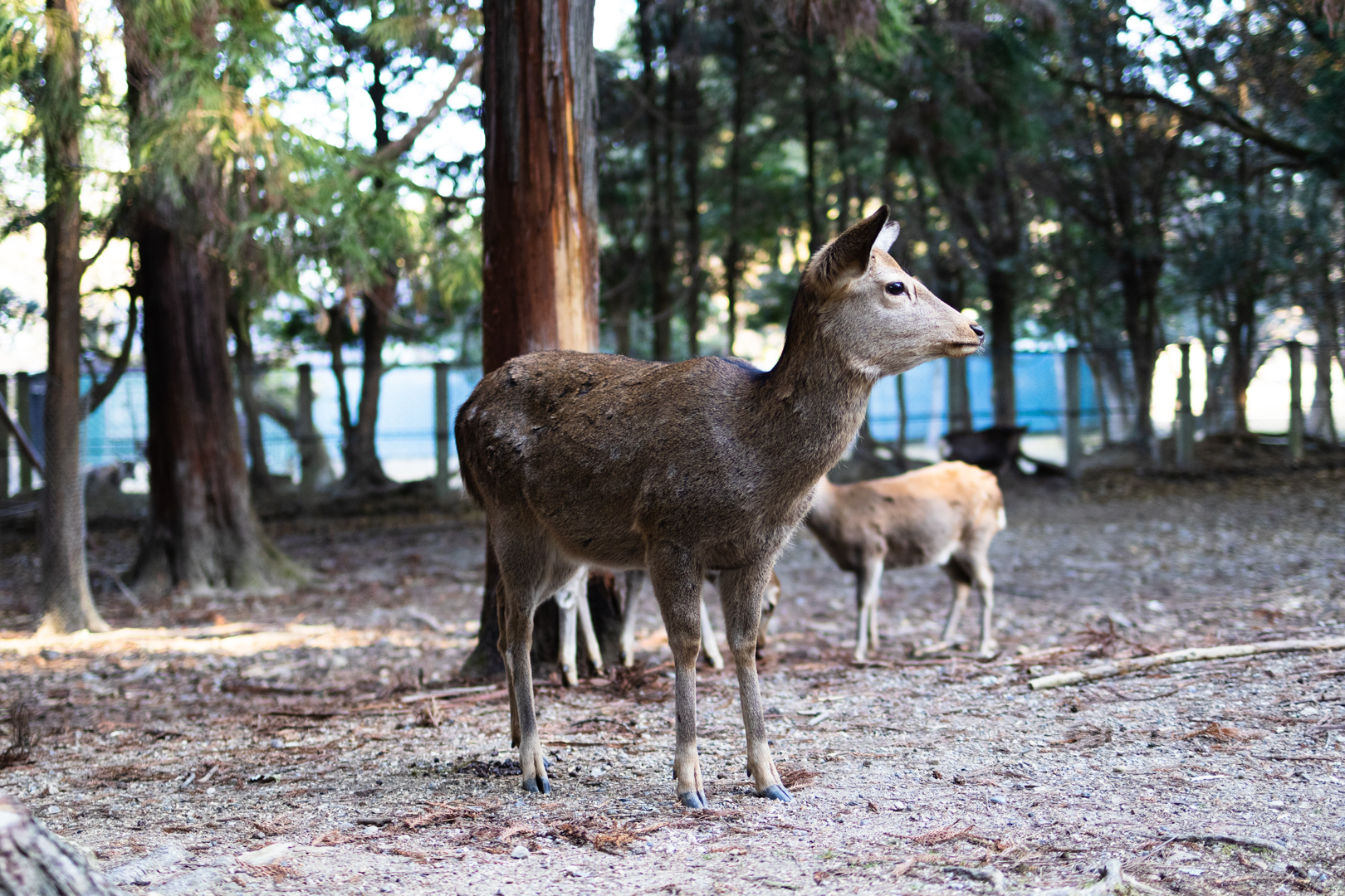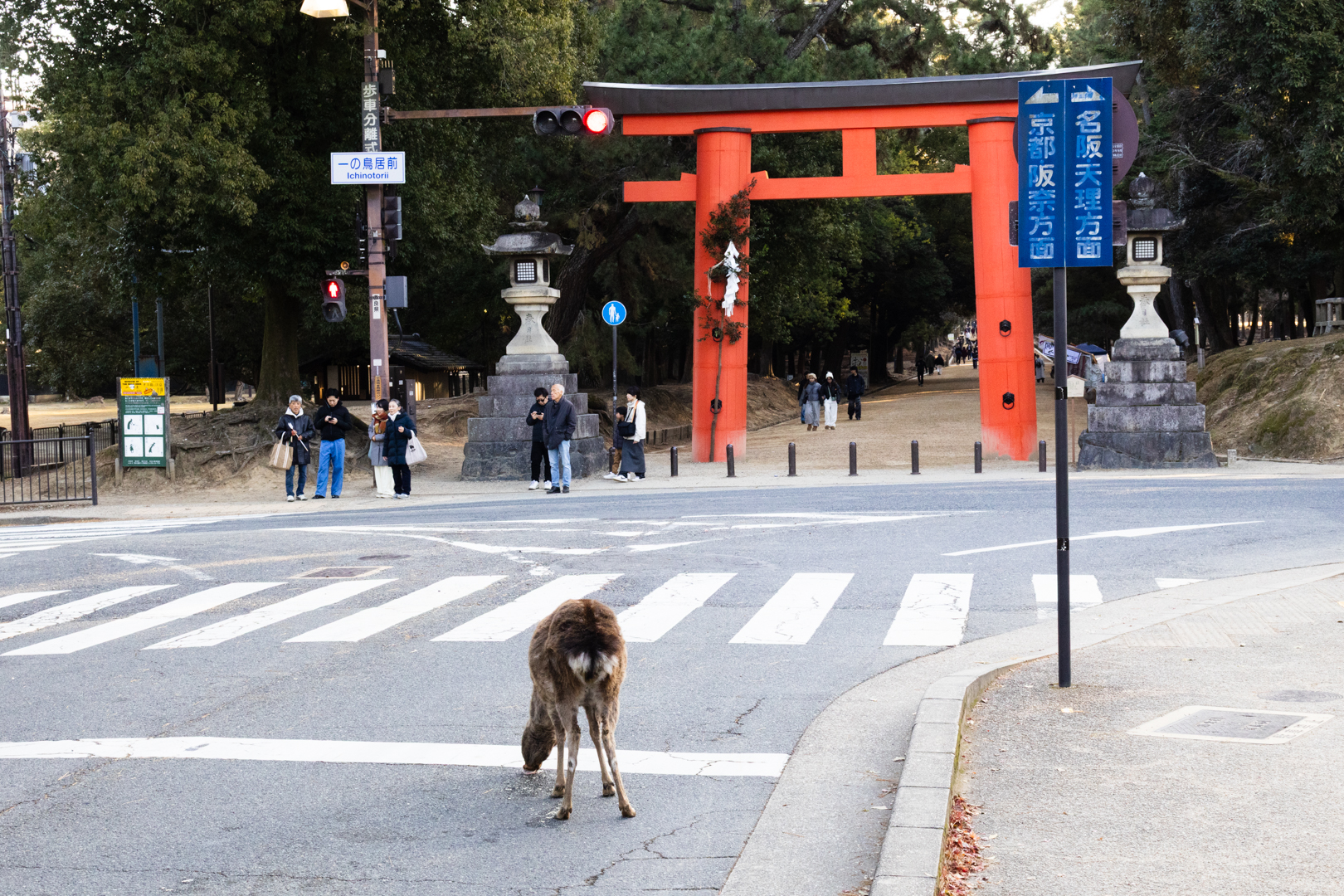 興福寺、東大寺、春日大社は奈良公園の中にあり、神様が常陸国から御蓋山に来られる際に白鹿に乗ってきたとされていることから、鹿は神様の使いとして大切に扱われています。2025年の調査では1465頭確認されています。