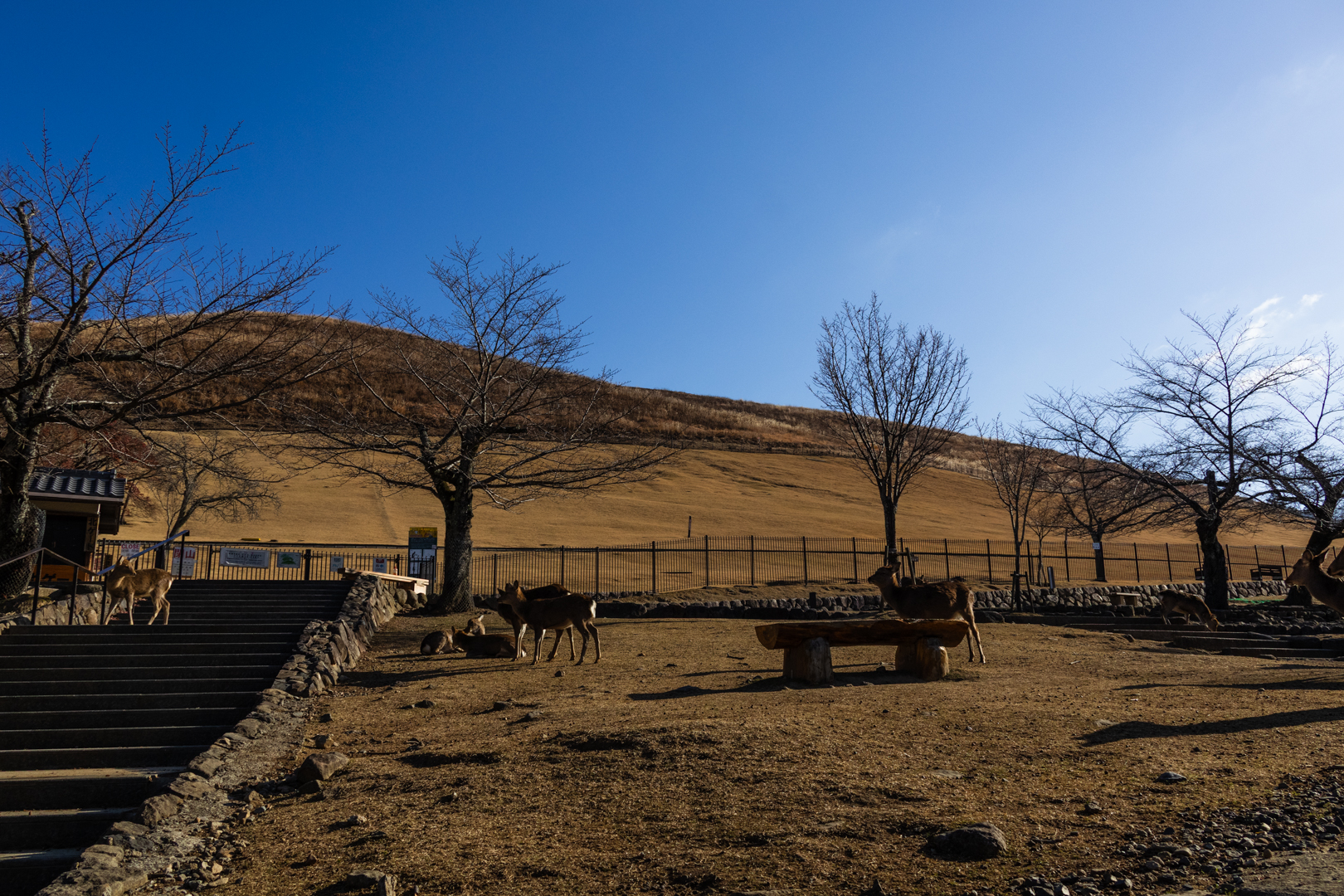 東大寺と春日大社の間には若草山があり、毎年1月に行われる若草山焼きは夜空を焦がす壮観さがあります。
