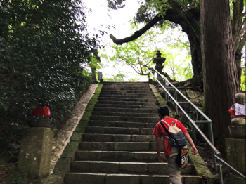 麓に参拝者用の駐車場がありますが、そこから歩くと1㎞ほどの兵庫県屈指の急な坂を登ることになります。