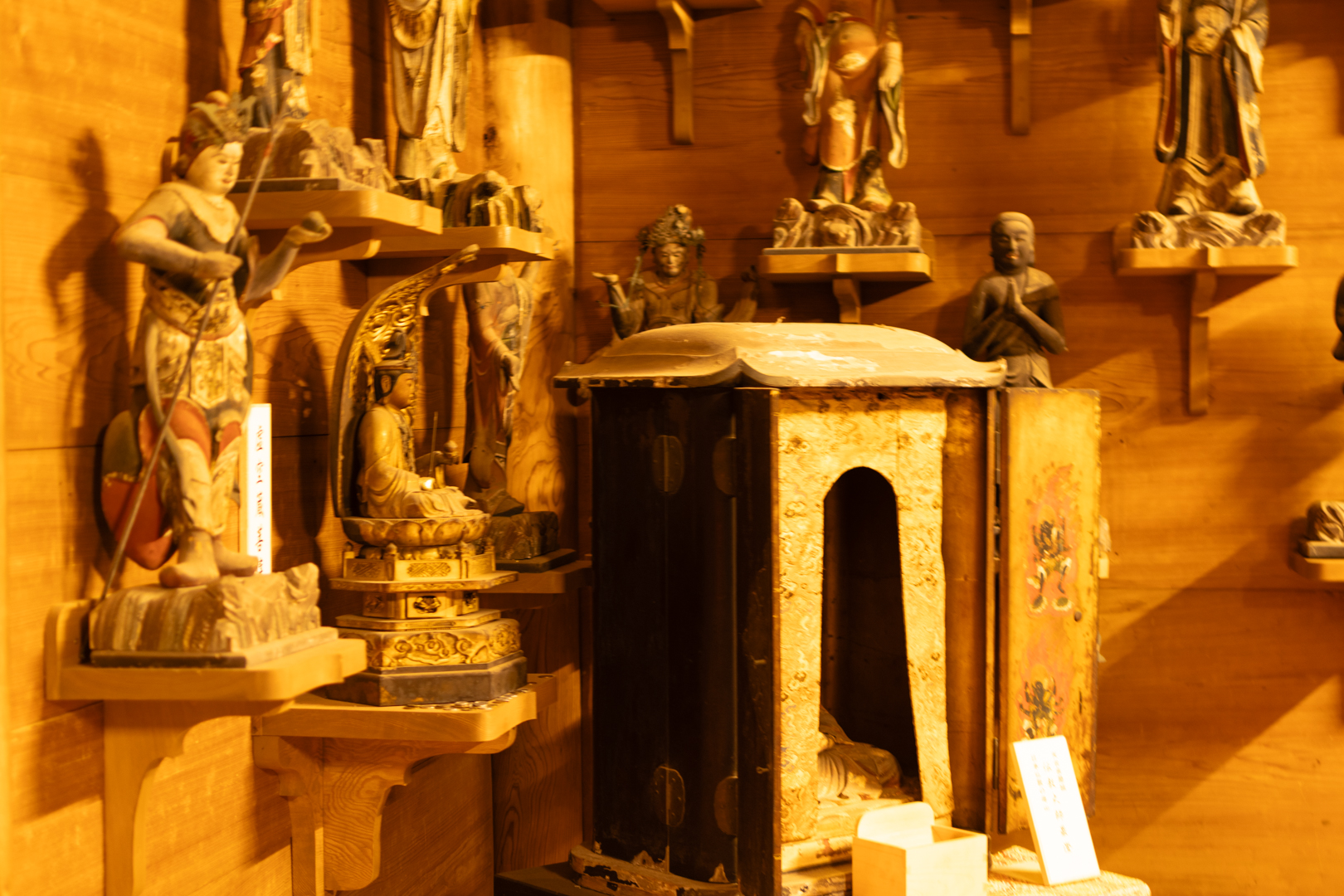 ご本尊である弥勒如来、札所本尊の千手観音、結婚や転職・転居など人生の変わり目にご利益のある日本唯一の方遺観音、足腰にご利益がある馬頭観音、仏像曼荼羅など仏像がいっぱい拝めます。