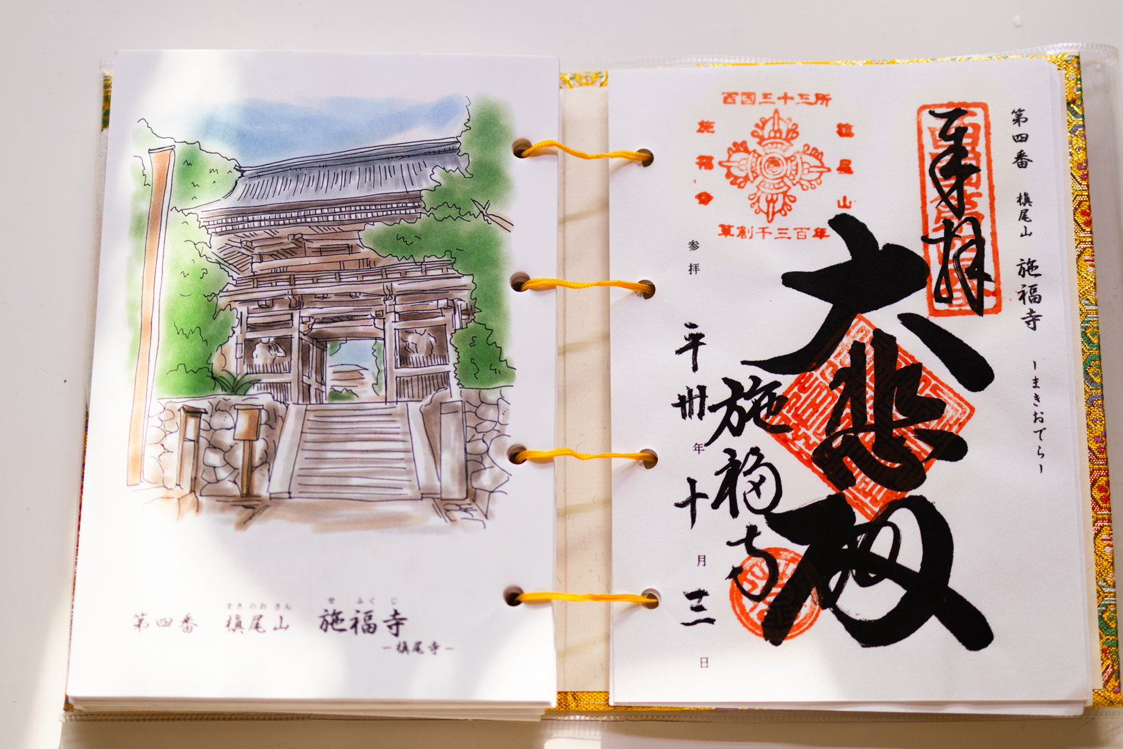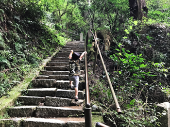 施福寺は交通の整ってきた現在では唯一、山道を登らなければ辿り着けなく、西国三十三カ巡礼では最大の難所になっています。駐車場からは約1キロの急勾配の階段を登続け、普通の人で30分位、脚や体力に自信ない方だと1時間位かかります。