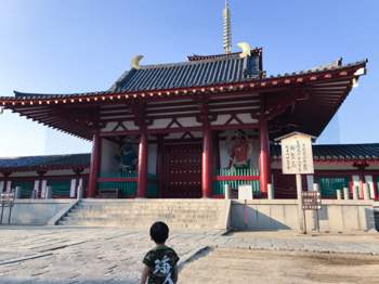 伽藍は「四天王寺式伽藍配置」と言われ、中門、五重塔、金堂、講堂を一直線に並べ、回廊で囲む様式で、最も古い建築様式になります。