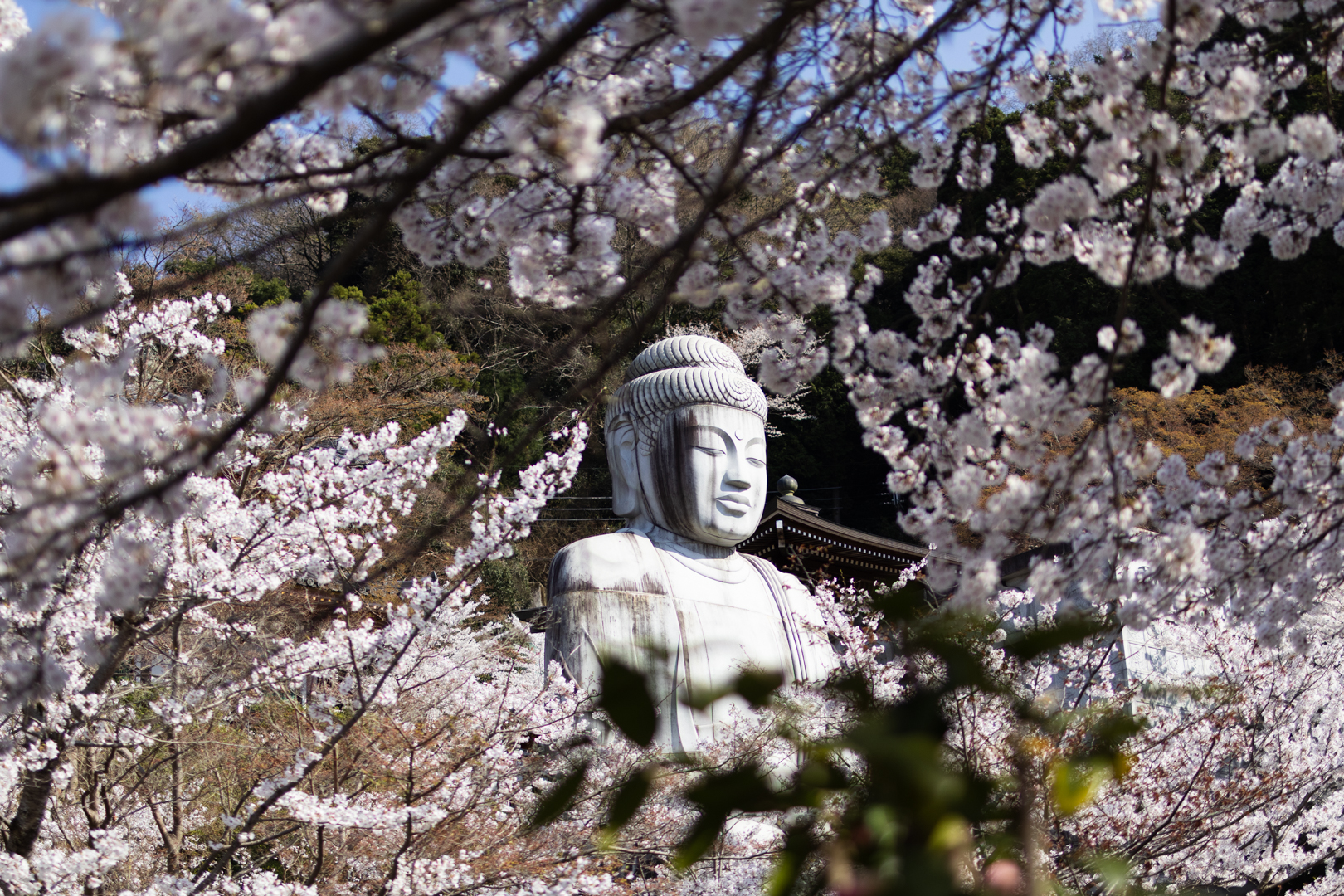 特に桜に包まれる大釈迦如来像は美しく、春には行列が出来るほどです。