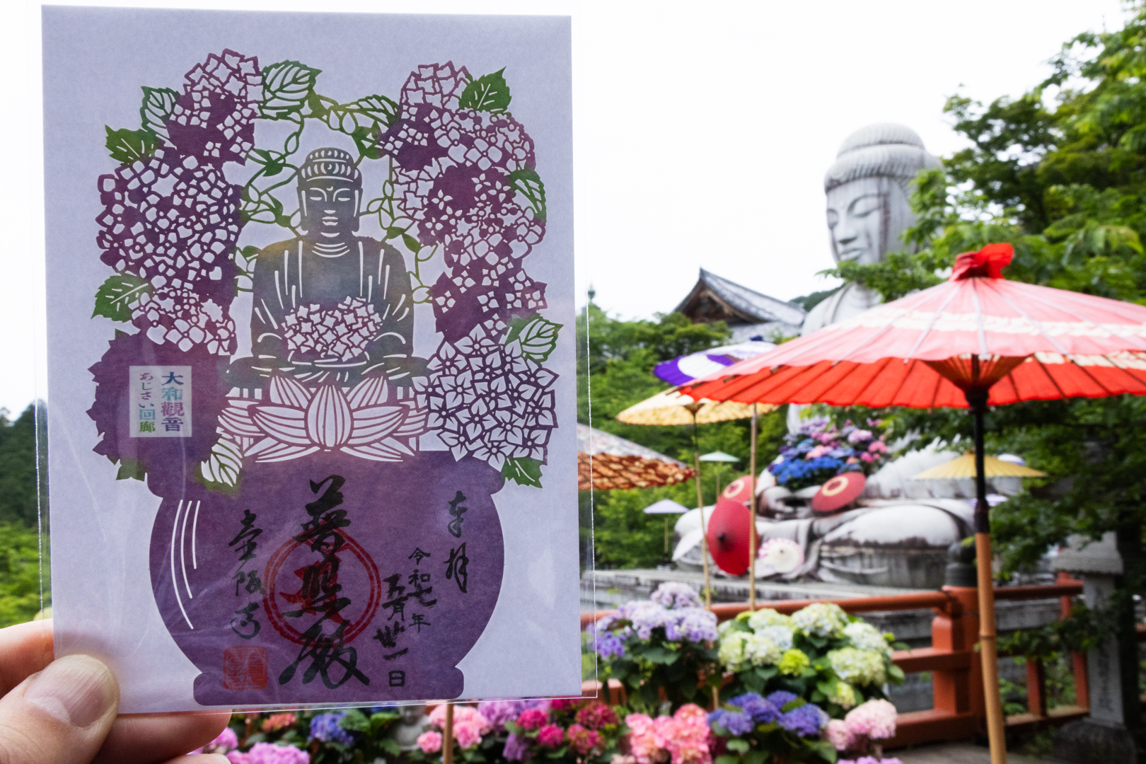 奈良の西国三十三カ所の長谷寺、岡寺と3寺共同で行われる「はるかぜ回廊」「あぢさゐ回廊」「もみじ回廊」は特別切り絵御朱印も出て人気です。
