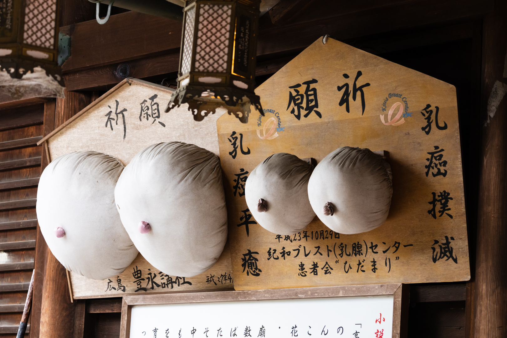 慈尊院の一番の目を引くところは本殿にたくさん奉納されている、乳癌平癒祈願の「乳房型絵馬」です
