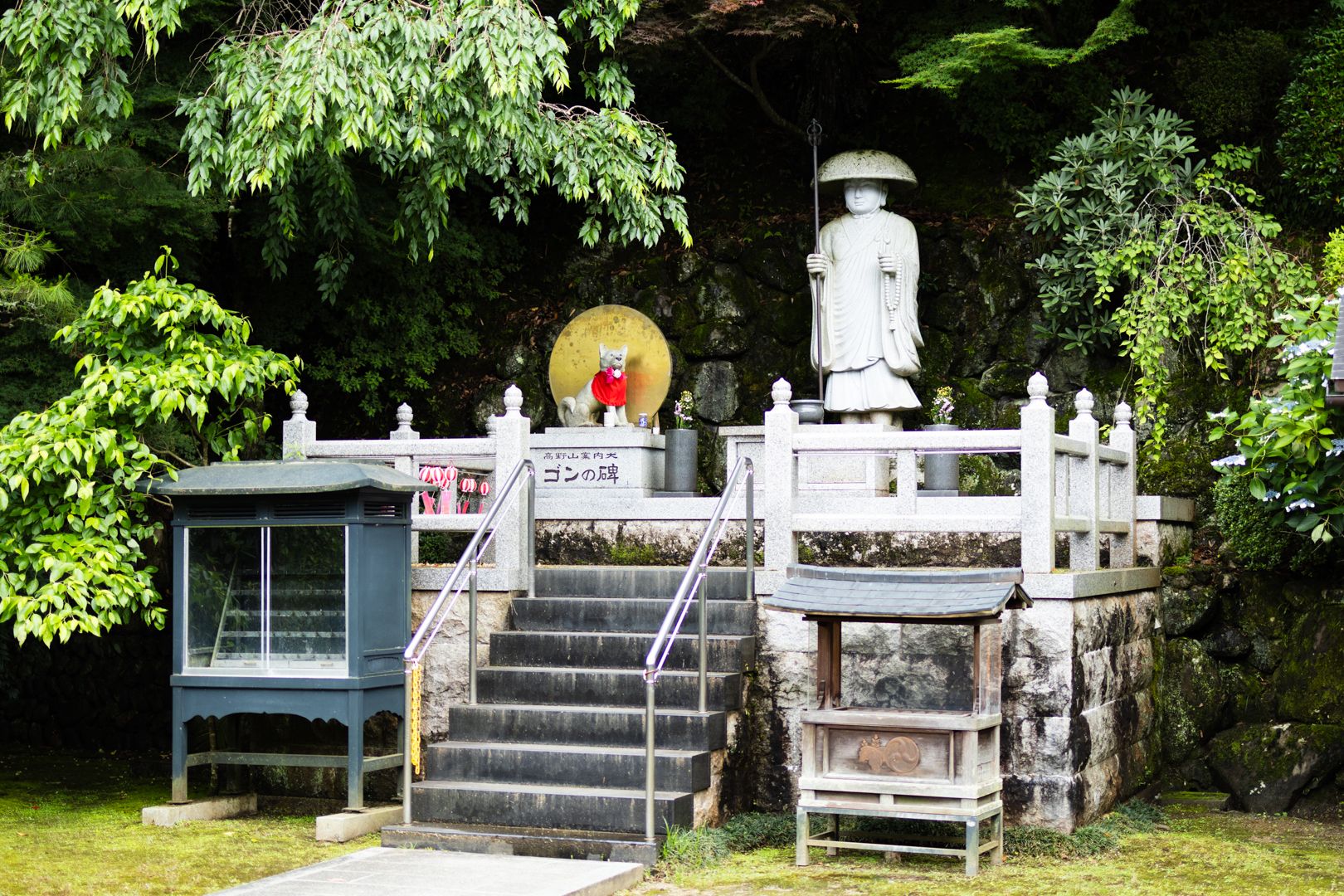 2006年、ゴンは息を引き取りましたが、あまりにも参詣者から愛されていたゴンを惜しみ、境内にある弘法大師像の横に「高野山案内犬ゴンの碑」が建てられました。