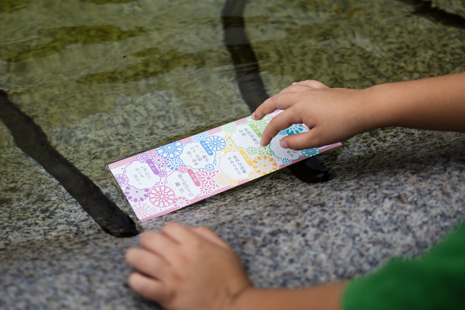 蓮型の水瓶におみくじを浸して占う「水みくじ」があります。